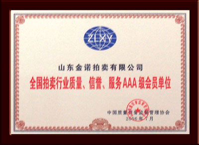 全國拍賣行業質量、信譽、服務AAA級會員...