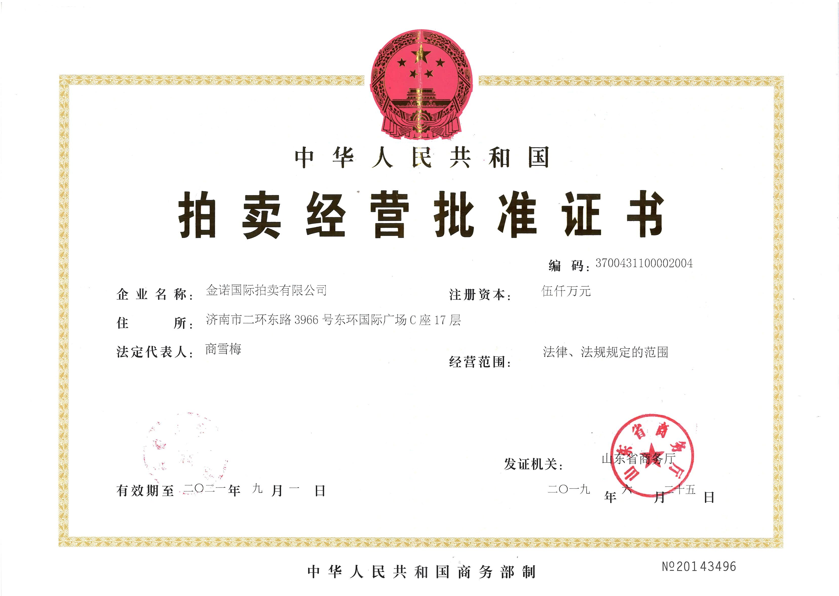 拍賣經營批準證