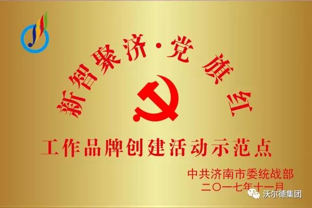 2017年12月12日,市委統(tǒng)戰(zhàn)部召開全市“新智聚濟(jì)·黨旗紅”工作品牌創(chuàng)建大會(huì)。會(huì)上,包括沃爾德集團(tuán)在內(nèi)的7家單位被授予濟(jì)南市首批“新智聚濟(jì)·黨旗紅”工作品牌創(chuàng)建活動(dòng)示范點(diǎn)。