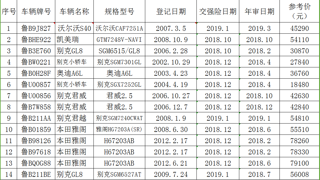 上一篇:5月4日聊城地區14處房屋三年期租賃權拍賣會 | 下一篇:4月28日車輛、設備等拍賣會 |