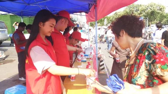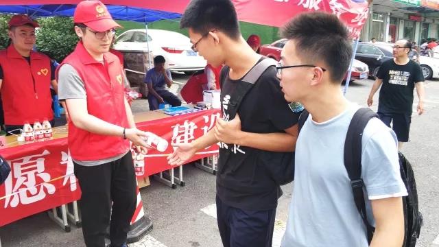 在考場外搭起的遮陽棚中,為考生和家長提供了礦泉水、紙巾、應急藥品、考試文具、扇子、手機充電設備等,并提供休息場所。志愿者們熱情地把愛心物品送到考生和家長的手中,并鼓勵考生們要放松心態,沉著冷靜,相信自己,考出水平。志愿者們還在考前考后清理周邊垃圾,積極維護學校周邊的公共衛生和秩序,為考生營造了良好的考試環境,使在考場外等待的家長倍感親切、溫暖。
