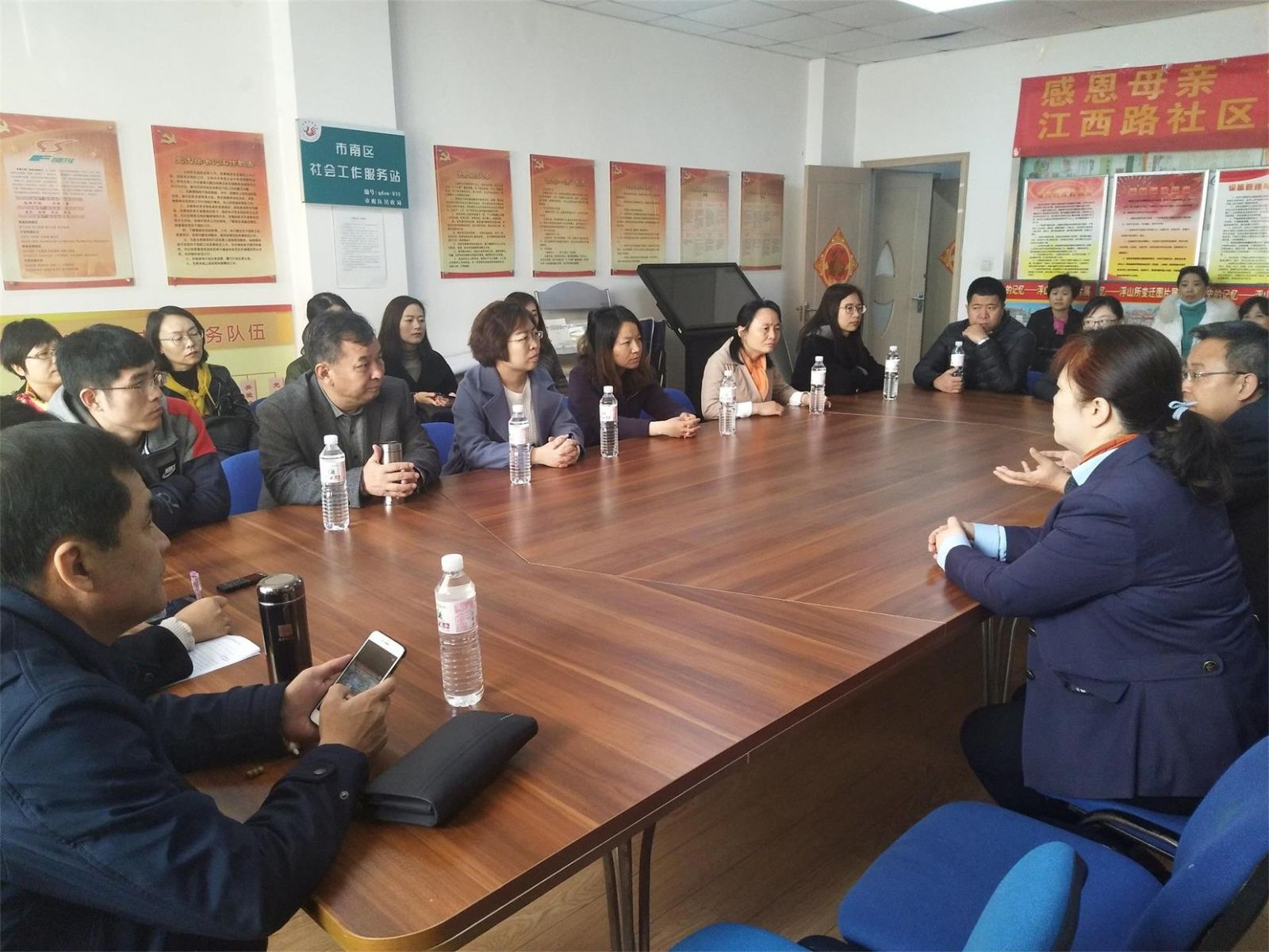 考察組一行到青島市南區八大湖街道高郵湖路社區、香港中路街道辦江西路社區進行社區黨建工作學習,到青島創客大街進行“兩新”組織黨建工作學習,到青島市市南區湛山街道石油大廈“紅色驛家”參觀學習樓宇黨建工作,到市北區社會組織創意工場參觀學習“紅紐帶”社會組織黨建品牌。