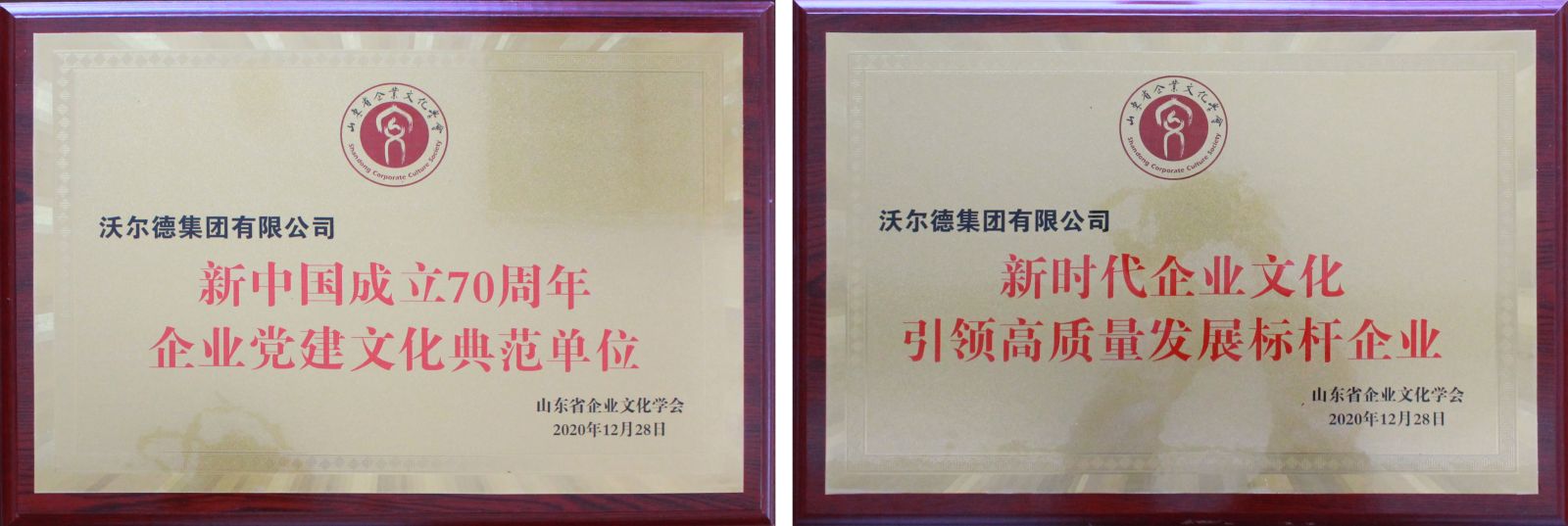 沃爾德集團同時獲得“新中國成立70周年企業黨建文化典范單位”、“新時代企業文化引領高質量發展標桿企業”兩項殊榮,是對集團企業文化建設成績的充分肯定。