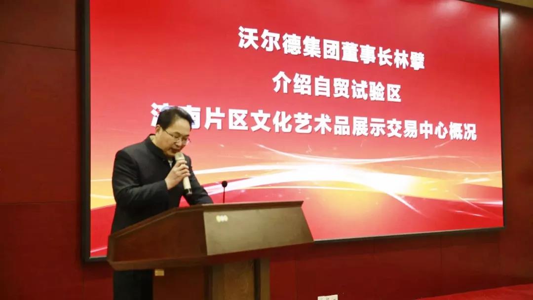 掛牌活動現(xiàn)場,沃爾德集團(tuán)董事長林擘介紹了“自貿(mào)試驗區(qū)濟(jì)南片區(qū)文化藝術(shù)品展示交易中心”概況。