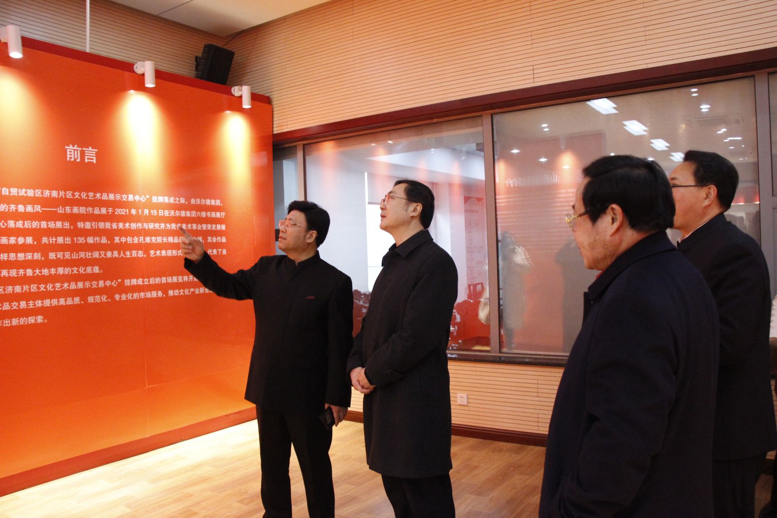 2021年1月22日下午,“自貿(mào)試驗區(qū)濟(jì)南片區(qū)文化藝術(shù)品展示交易中心掛牌活動”在沃爾德集團(tuán)隆重舉行。市委常委、宣傳部部長楊峰,市委常委、自貿(mào)試驗區(qū)濟(jì)南片區(qū)管委會主任、濟(jì)南高新區(qū)管委會主任王宏志,全國政協(xié)委員、中國美協(xié)理事、民革中央畫院院長、山東省中國畫學(xué)會會長、山東畫院院長孔維克,市政府副秘書長、自貿(mào)試驗區(qū)濟(jì)南片區(qū)常務(wù)副主任劉艷秋,市委宣傳部副部長趙善海,濟(jì)南日報報業(yè)集團(tuán)副總編輯馬凱,市文化和旅游局黨組副書記、副局長蘇文,沃爾德集團(tuán)董事長林擘,金諾國拍集團(tuán)董事長商雪梅等出席活動,金諾國拍集團(tuán)總裁位琳主持活動。