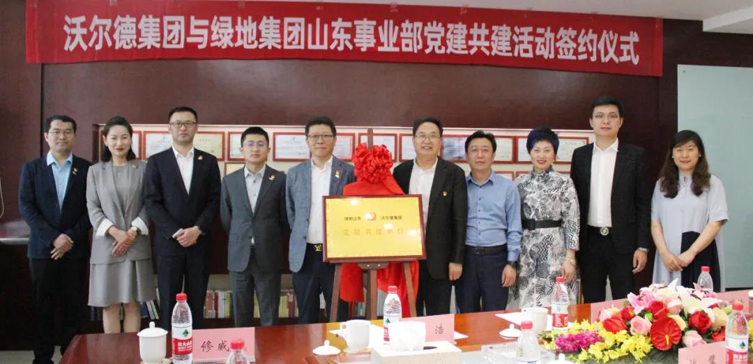 黨建共建簽約儀式上,綠地集團總裁助理、山東事業部黨委書記、總經理薛明輝與沃爾德集團黨支部書記、董事長林擘共同簽訂《黨建共建協議書》,并為“綠地山東—沃爾德集團黨建共建單位”揭牌,標志著雙方正式確立黨建工作和業務雙線合作的新型關系,將進一步強化“兩個黨組織”的戰斗堡壘和黨員先鋒模范作用。雙方也將以此為契機,充分發揮各自優勢,通過加強交流、互助合作,進一步促進各領域的合作共贏。