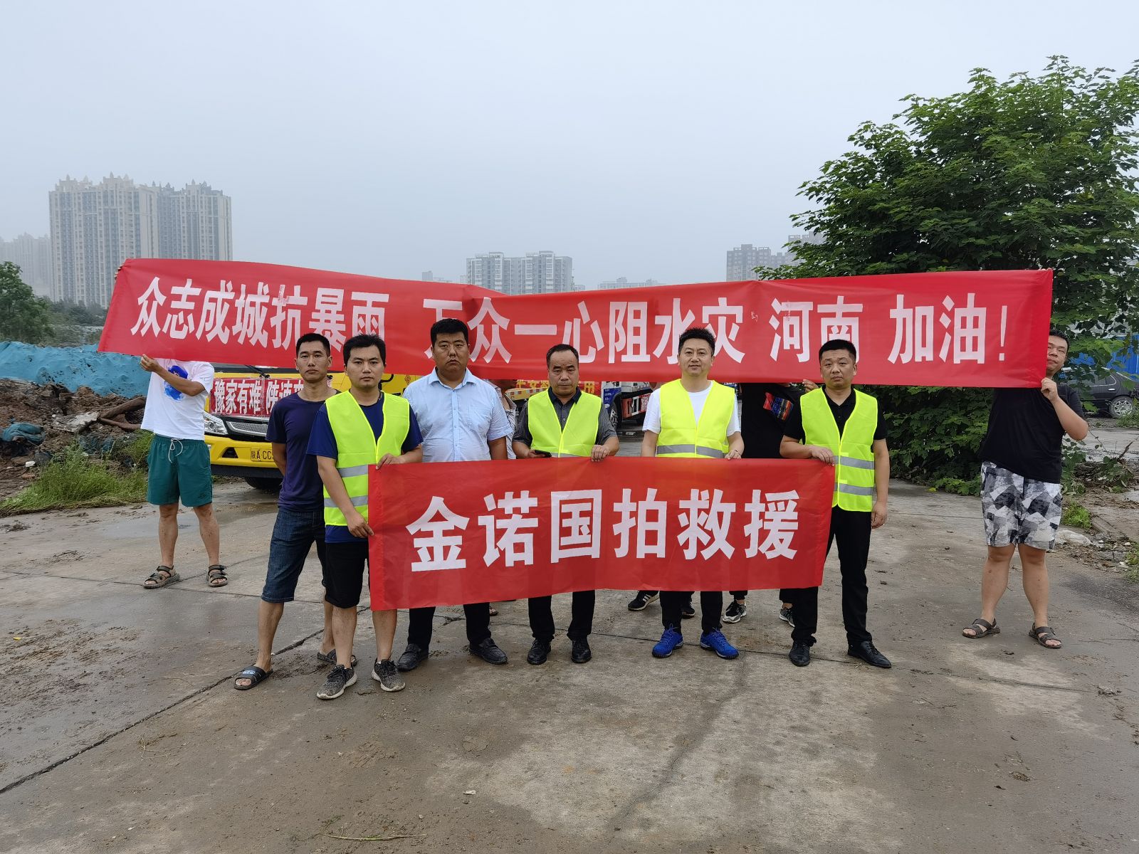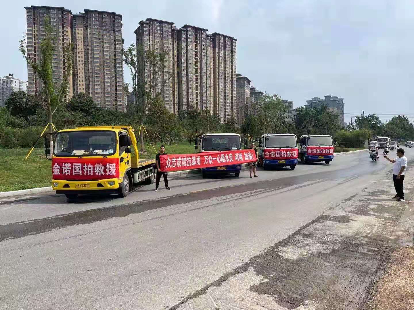 目前,金諾國拍集團從山東、江蘇、安徽、陜西等省份抽調(diào)救援車50余輛抵達受災嚴重的鄭州、鞏義、新鄉(xiāng)、周口等地協(xié)助保險公司開展工作,全力以赴提供救援服務,充分彰顯了金諾人在大災面前顯擔當 ,危急關(guān)頭沖在前,勇?lián)鐣熑蔚钠髽I(yè)精神風貌。