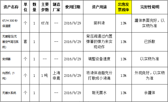受委托,我公司將于2021年11月25日下午10時在金拍網(wǎng)平臺https://www.jinpaiwang.com.cn以網(wǎng)絡(luò)競價的方式公開處置保溫罐、變頻器、均質(zhì)機(jī)、無菌水系統(tǒng) 等一批設(shè)備,設(shè)備未裝箱,完好。