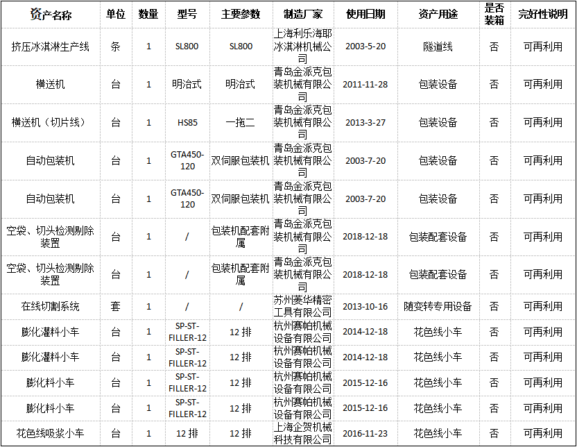 受委托,我公司將于2022年2月16日下午15時在金拍網(wǎng)平臺https://www.jinpaiwang.com.cn以網(wǎng)絡(luò)競價的方式公開處置擠壓冰淇淋生產(chǎn)線、前處理系統(tǒng)設(shè)備、12排小車、包裝機等(具體見標(biāo)的詳情)。起拍價格:1092610 元(含13%稅),設(shè)有保留價,競買保證金20萬元。