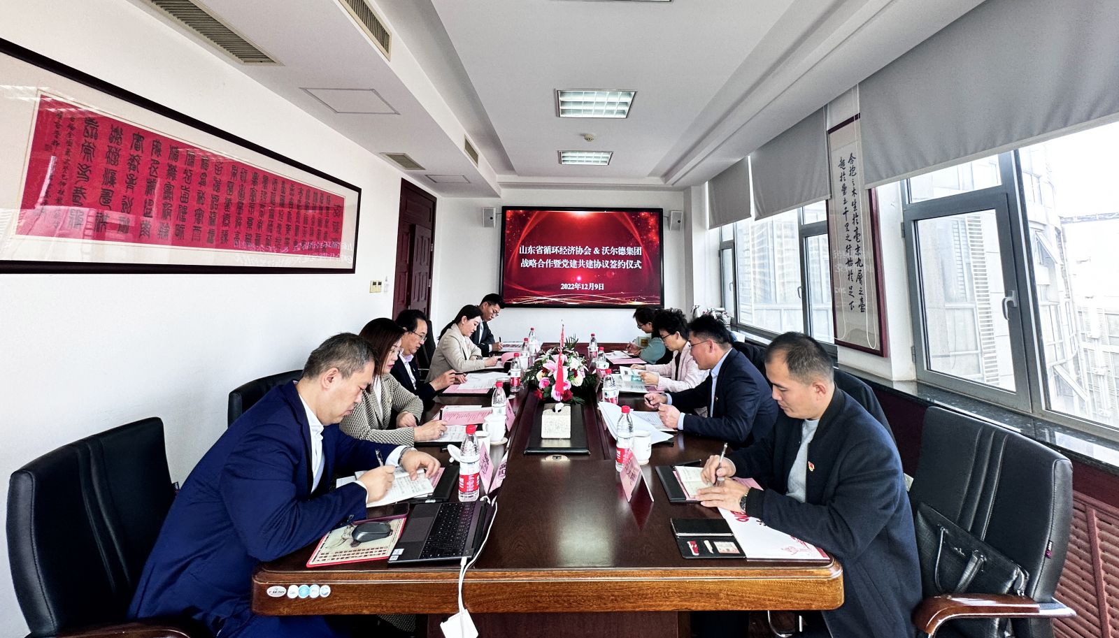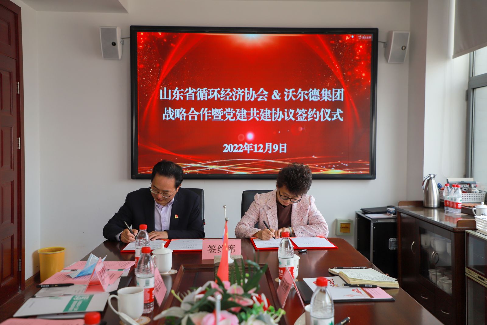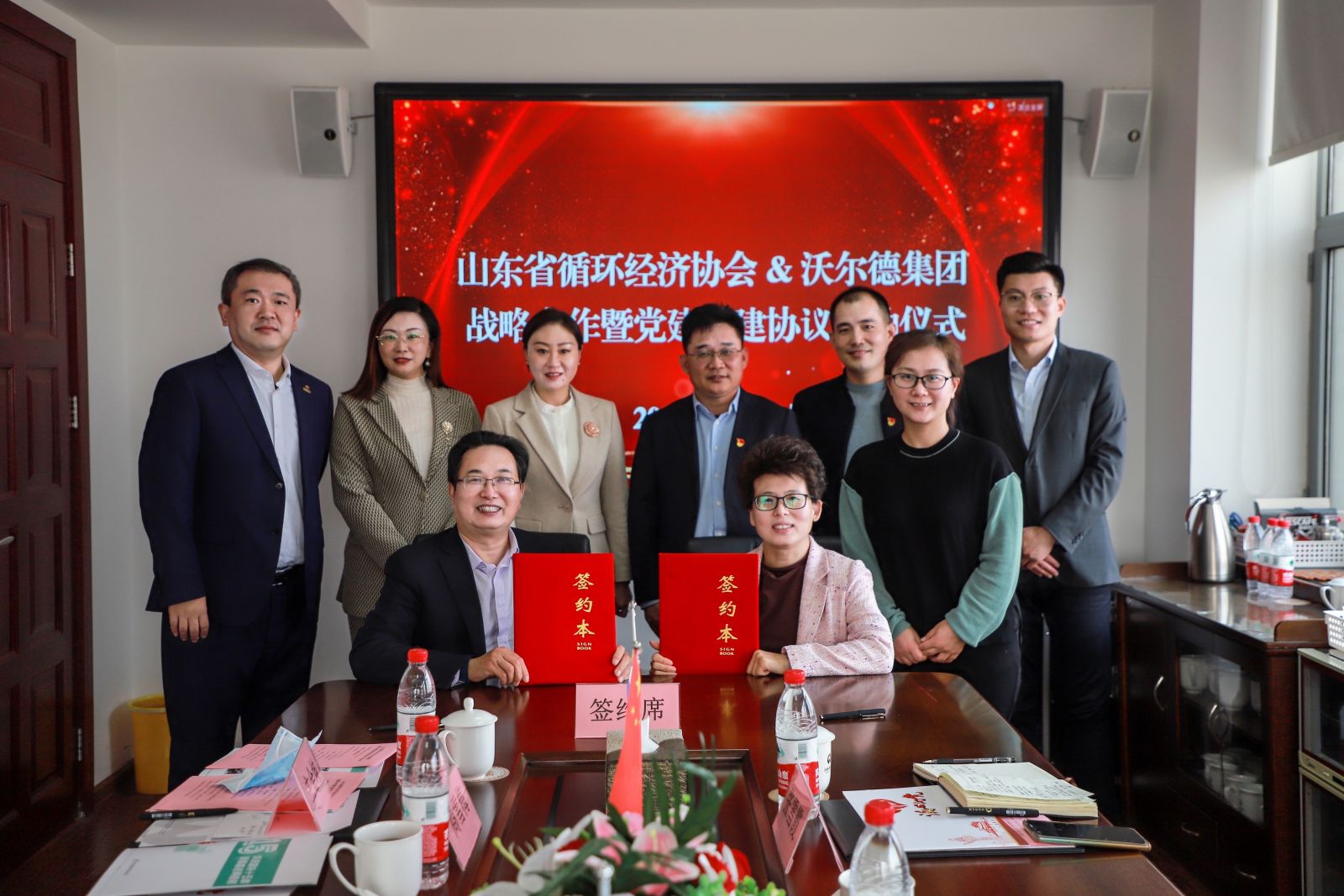 山東省循環(huán)經(jīng)濟協(xié)會執(zhí)行會長張忠蓮、黨支部書記/監(jiān)事孫文歡,城市礦產(chǎn)專委會辦公室主任呂義超,綜合辦張雪霞;沃爾德集團董事長林擘,沃爾德集團總裁、金諾國拍集團董事長商雪梅,金諾國拍集團總裁位琳出席簽約儀式,并就雙方合作進行了深入交流。