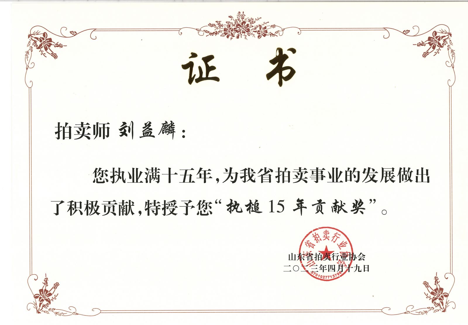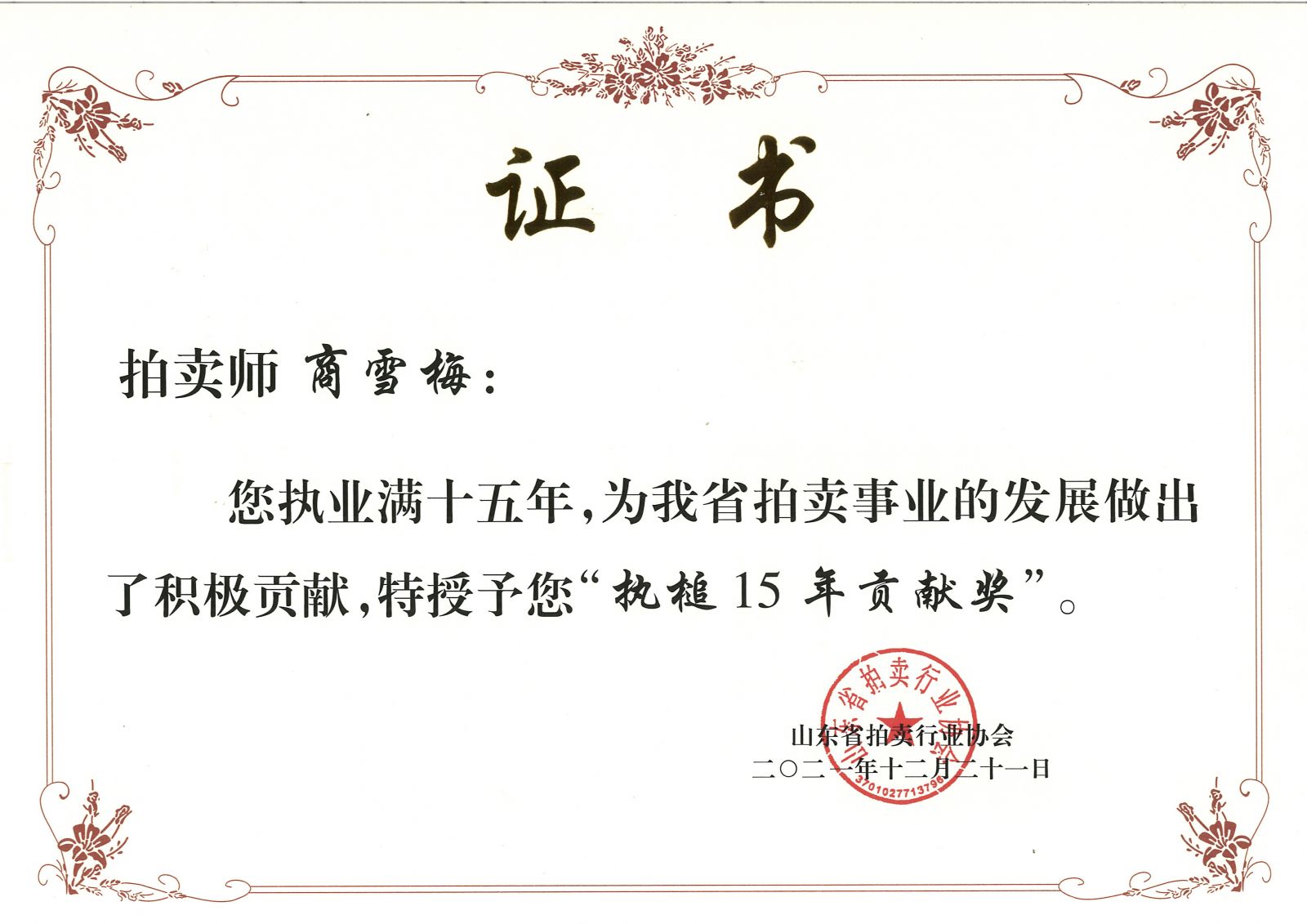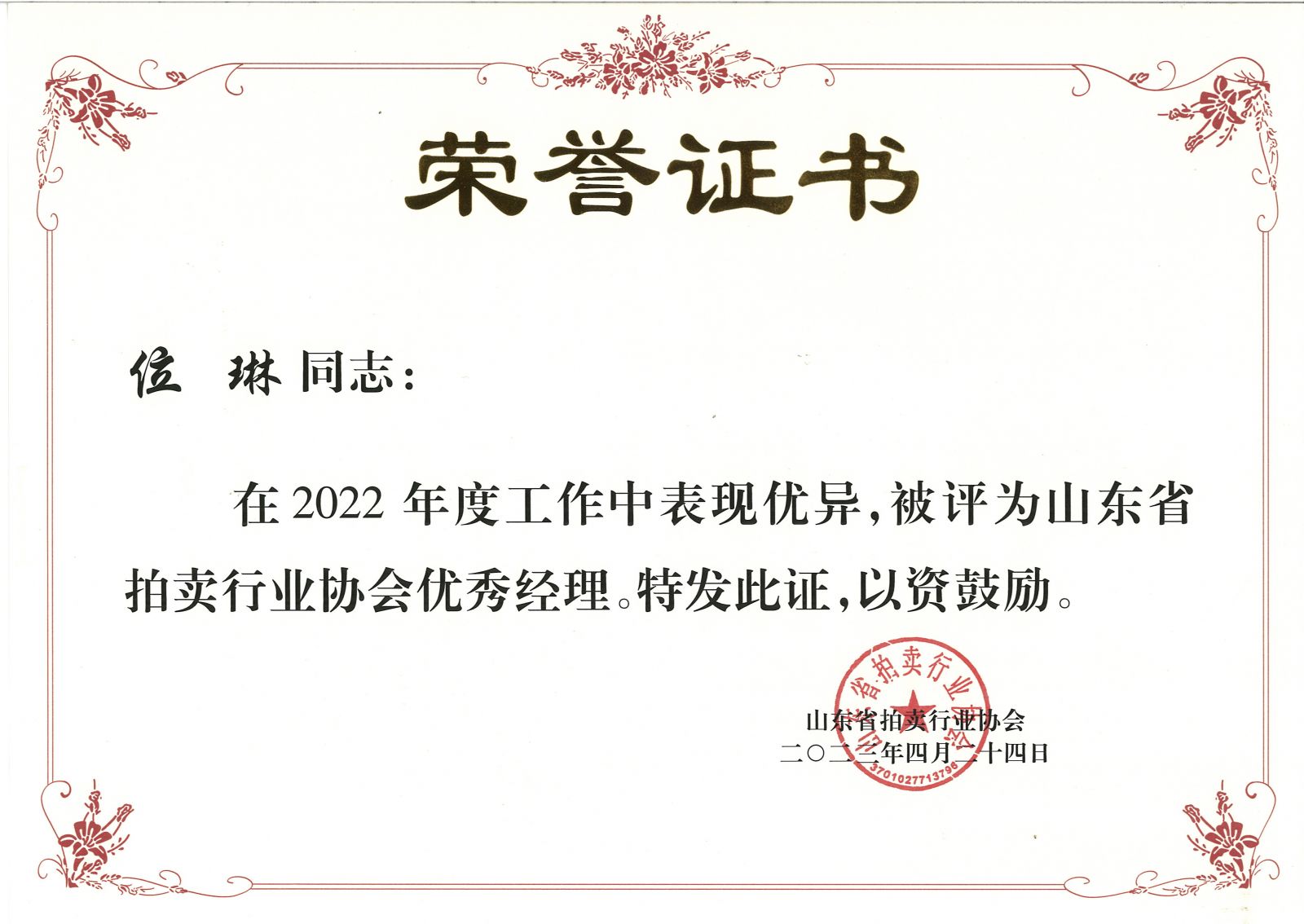 為表彰先進,樹立典范,進一步擴大拍賣行業影響力。近日,山東省拍賣行業協會向獲得省拍協2022年度先進單位和優秀經理及榮獲山東省“執槌15年貢獻獎”的拍賣師頒發榮譽證書。