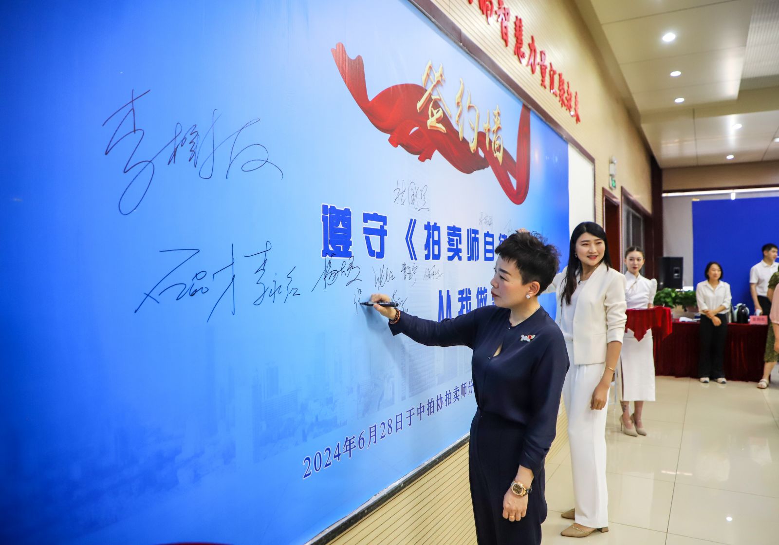 參會拍賣師現場進行簽約。這是對拍賣行業的敬畏,也是一名拍賣師的莊嚴承諾。拍賣師們紛紛表示將積極響應號召,嚴格遵守《拍賣師自律公約》,履行拍賣師的職責,為拍賣行業的健康發展貢獻力量。