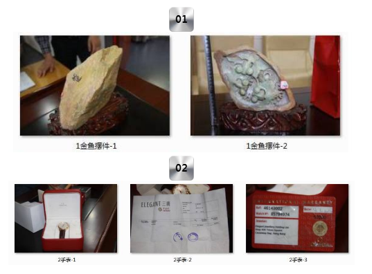 存貨物品一宗(包括木質雕刻類、玉石擺件類、字畫類等),詳見清單。參考價225.2萬元,保證金30萬元。