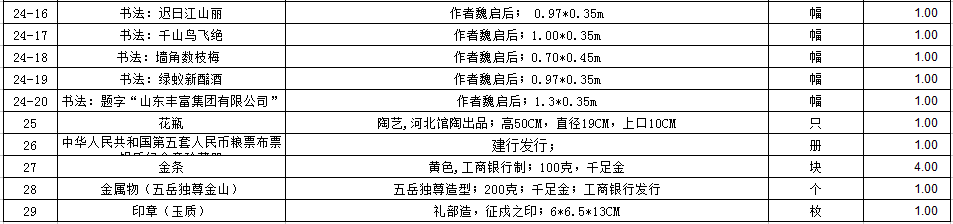 四、辦理登記手續:1、有效身份證明(個人:身份證原件及復印件;企業:公章、營業執照原件及復印件、法人身份證原件及復印件、授權委托書、授權人身份證原件及復印件均加蓋公章);2、拍賣保證金:將規定數額的保證金于拍賣匯入指定賬戶(戶名:金諾國際拍賣有限公司;賬號:15158501040004829;開戶行:中國農業銀行濟南經十路支行)。